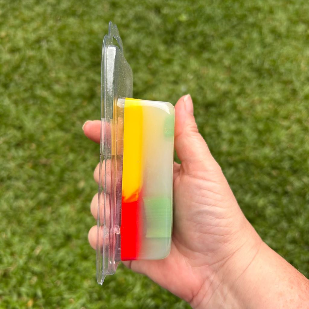 Utilizamos Base Glicerinada Premium, Essência sintética, Extrato de Aloe Vera, Lauril e corantes cosméticos!